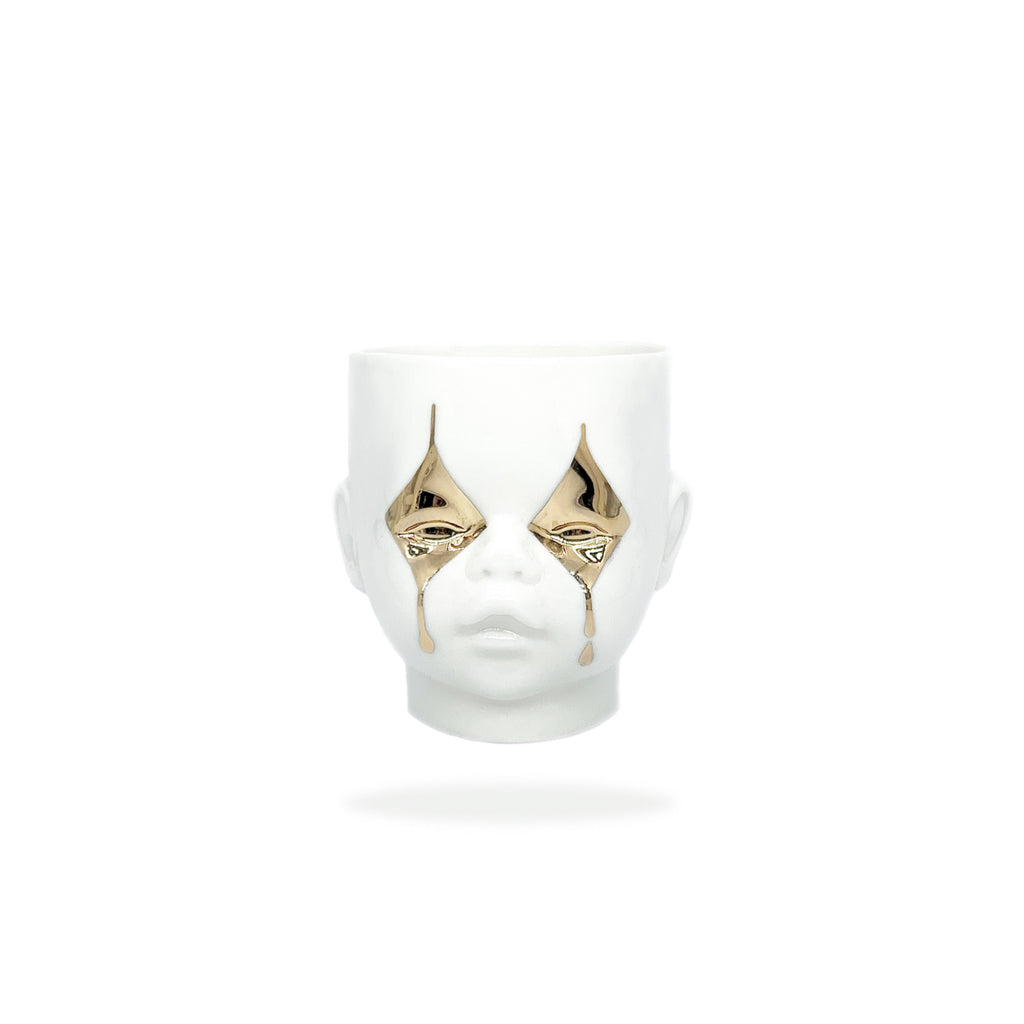- Available in white with 24K golden lips, handle and mask.