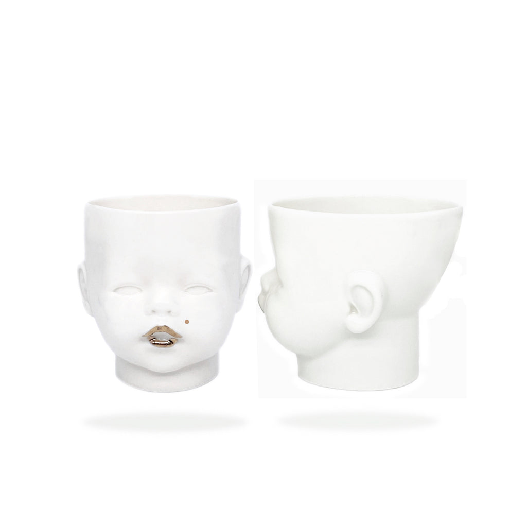 Available in white with 24K golden lips, handle and her iconic beauty mark.