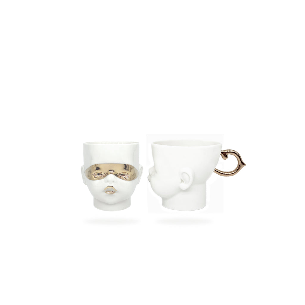 - Available in white with 24K golden lips, handle and mask.