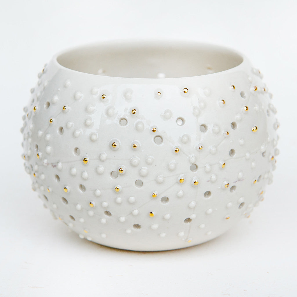 Inspired by the passion and mystery of a well-known story "1001 Arabian night", this set is all about elegance and luxury. Every piece is handcrafted with love and care to the very last detail by Marion Isabelle Varik which therefore keeps them all unique. The surface of every item is textured with small dots, put there one by one by hand and then selectively painted with 24K gold or platinum, to add an extra sparkle. This set is expressive and luxurious, a true eye-catcher to turn your gatherings into unforgettable events to tell your story.